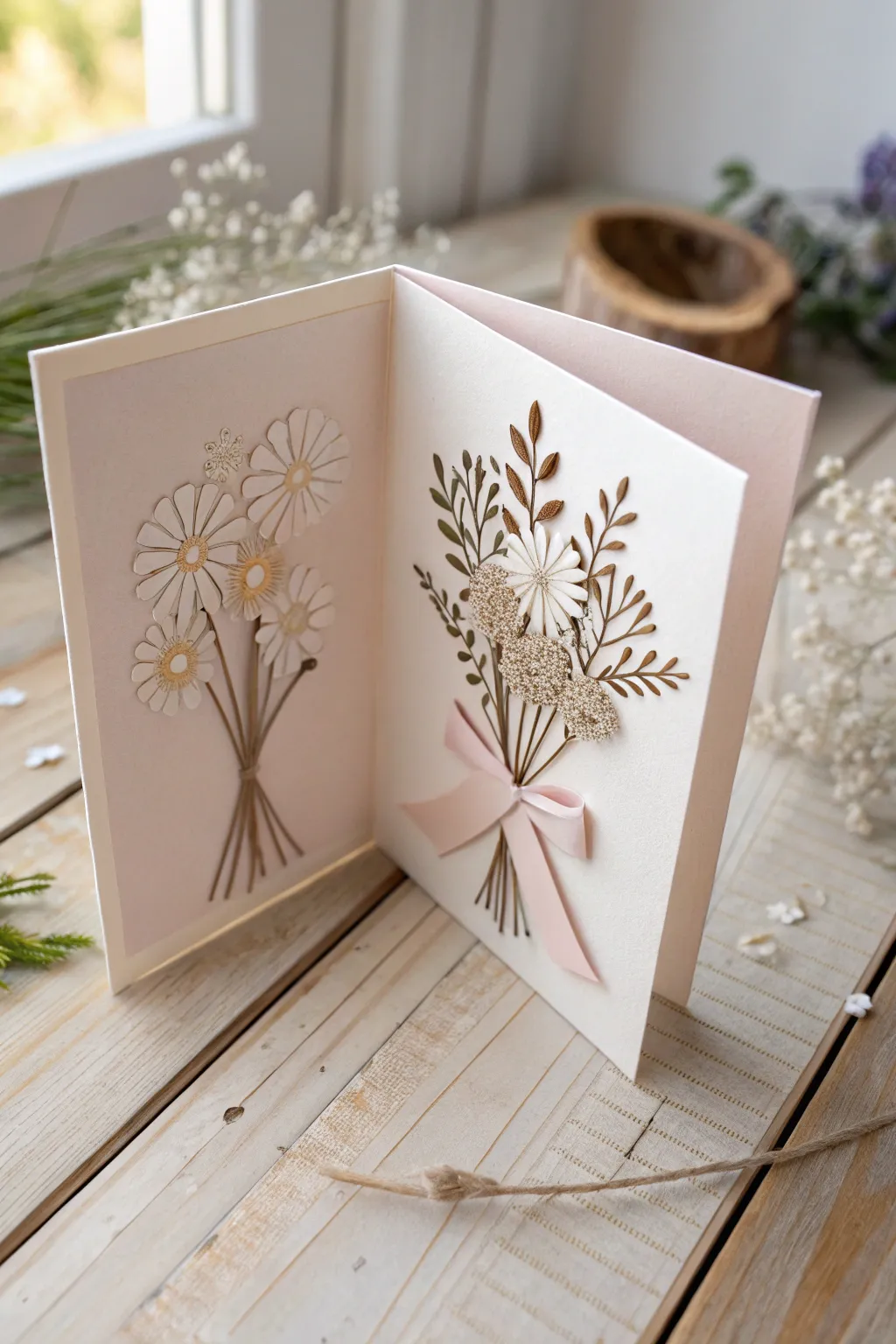 Attach a small pocket filled with DIY confetti inside the card. It’s a fun and festive surprise that adds a personal touch.