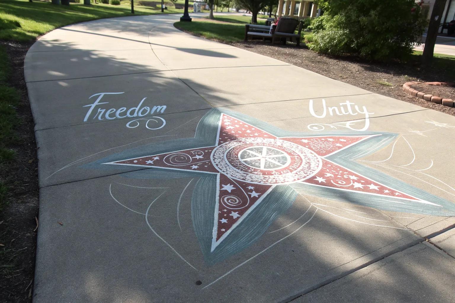 Unleash your creativity with an abstract design using patriotic colors. There’s no right or wrong here, just let the chalk flow and see what emerges!