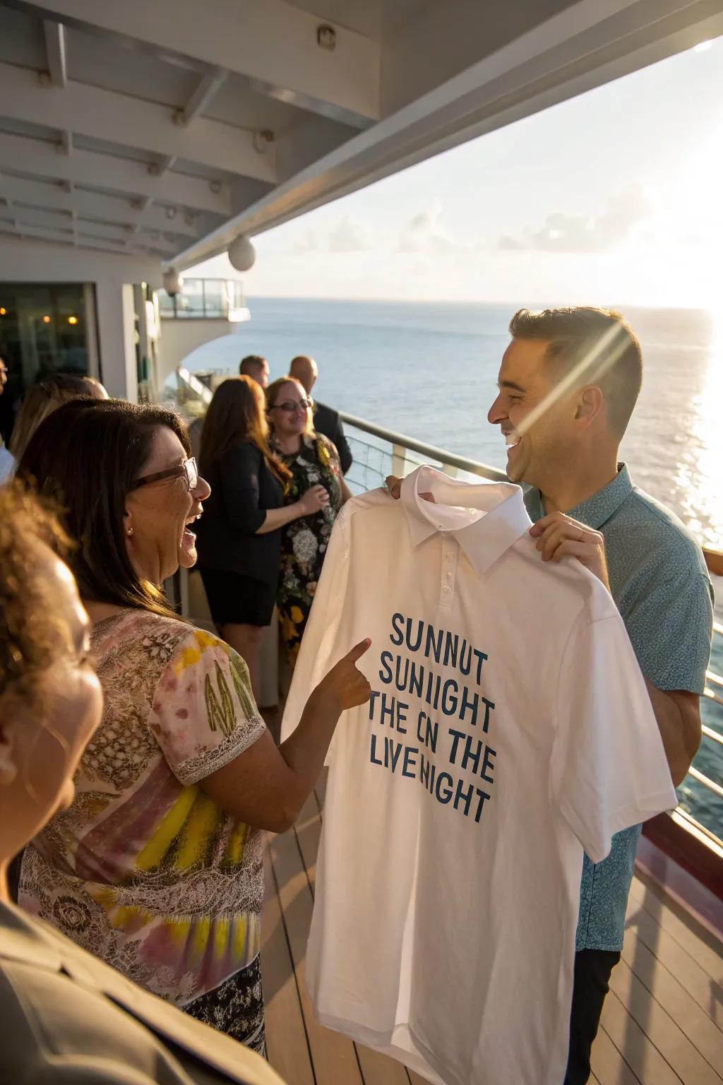 Add a personal touch with a custom name and message on your cruise shirt. It’s a heartfelt way to keep the memory of the celebration close, and I’ve found personalization always adds that extra special touch.