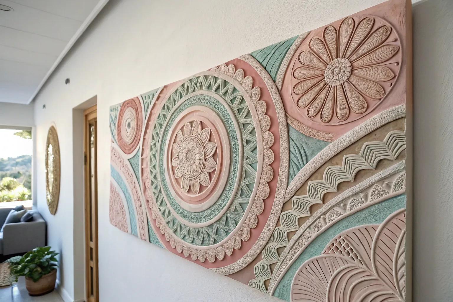 Imagine stepping into a room where the walls are alive with colorful swirls of clay. This technique is a hallmark of many modern clay wall art ideas. I once tried this on a lazy Sunday afternoon, and the vibrant spirals instantly lifted my spirits. It’s not just about the colors; it’s the joy of seeing them dance across your wall.