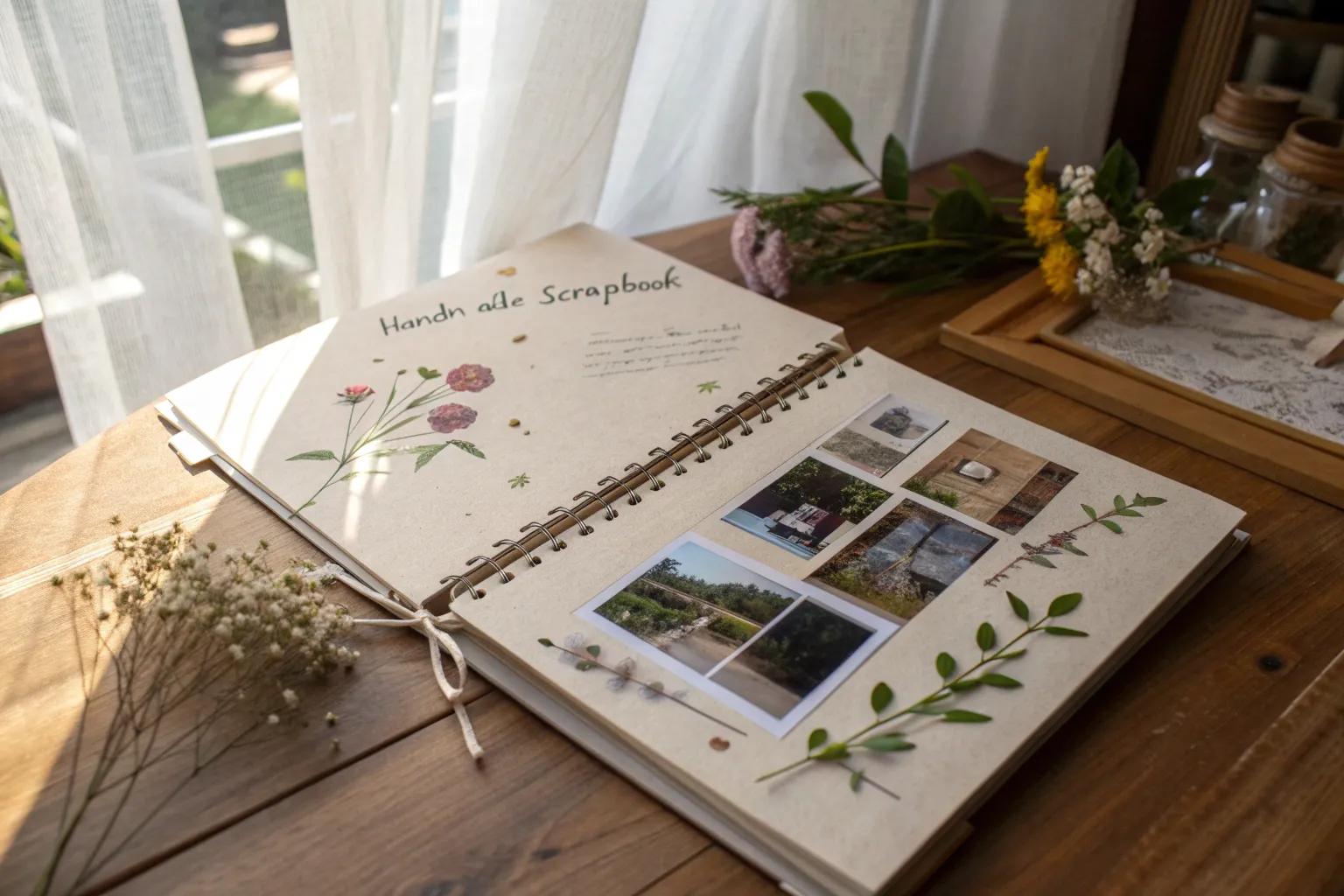 Include QR codes that link to video messages or playlists. This blend of digital and physical brings our scrapbook to life, making it a great example of creative DIY anniversary gift ideas.