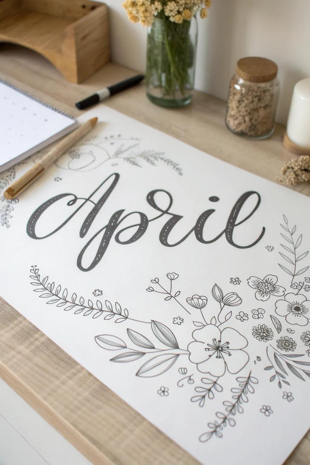 Experiment with decorative lettering to write ‘April’ in your unique style. I love combining calligraphy with floral motifs.