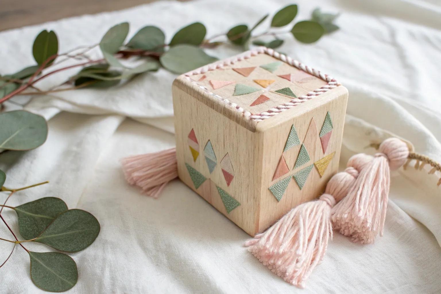 Wrap blocks in pieces of soft fabric for a cozy texture. This is a great way to use up fabric scraps from other projects, which is perfect if you’re also exploring new baby quilt patterns!
