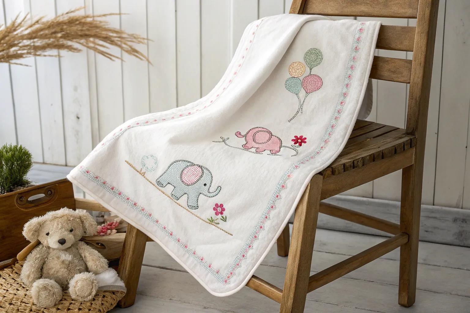 Who can resist a cute elephant marching across a baby blanket? It’s a fun and friendly design that kids adore.