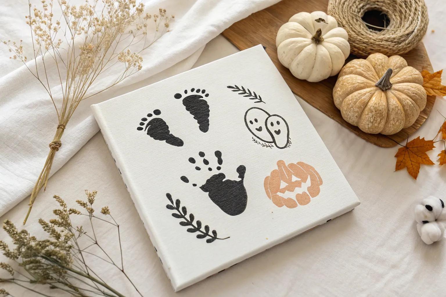 Use white paint to make a footprint and add a few bones with a black marker for a cute skeleton craft. It’s a spooky yet adorable way to celebrate.
