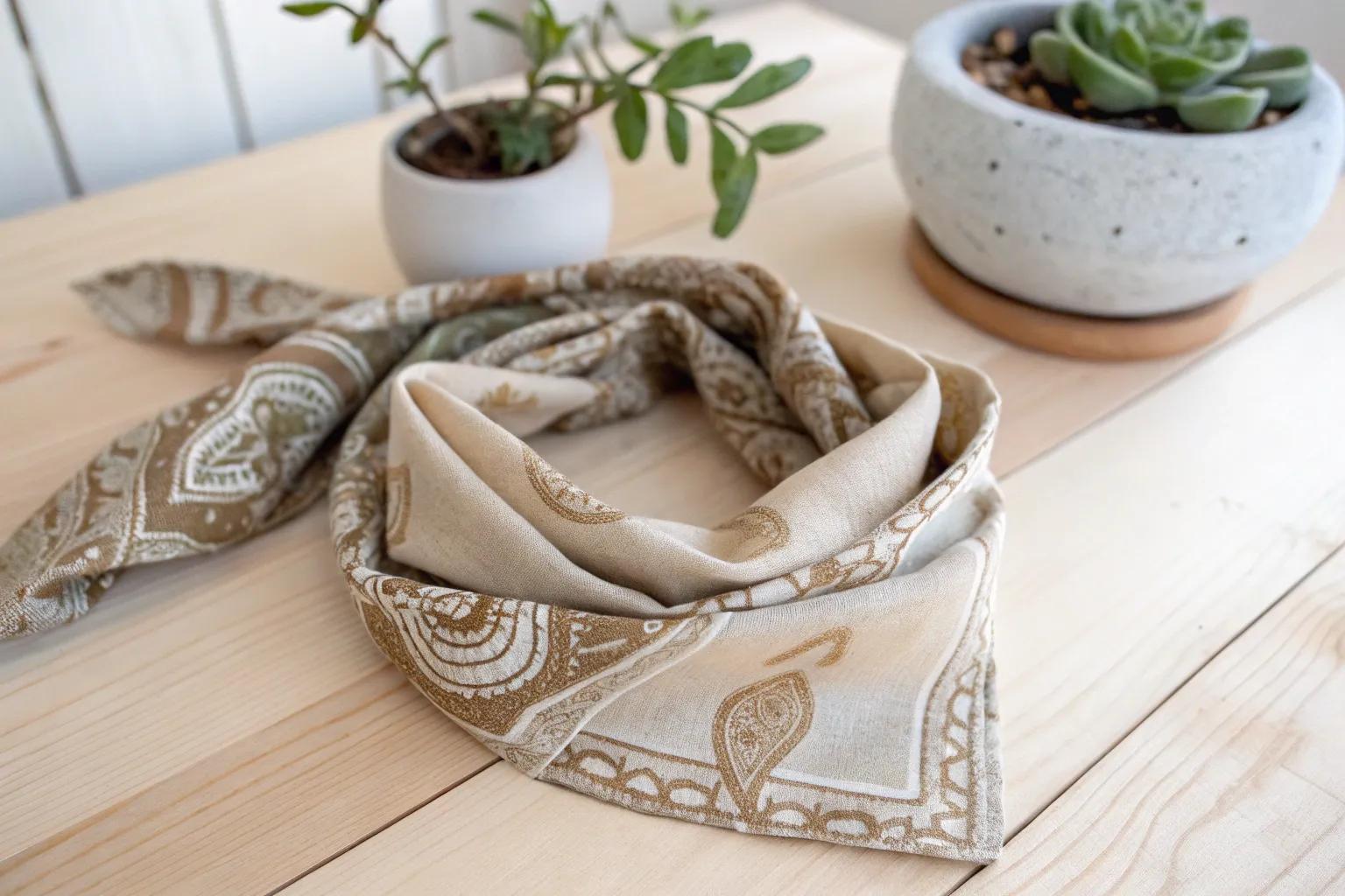 Transform your bandana into a chic neck scarf by folding it into a triangle and draping it around your neck. Tie the ends in a loose knot for a casual yet sophisticated look.