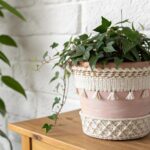 Add a bohemian flair to your baskets with macrame. This technique transforms a simple basket into a stylish wall pocket, which is just one of many unusual hanging basket ideas with boho vibes.