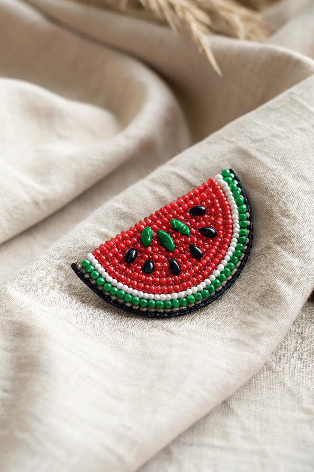Add a splash of summer fun with this charming beaded watermelon brooch!