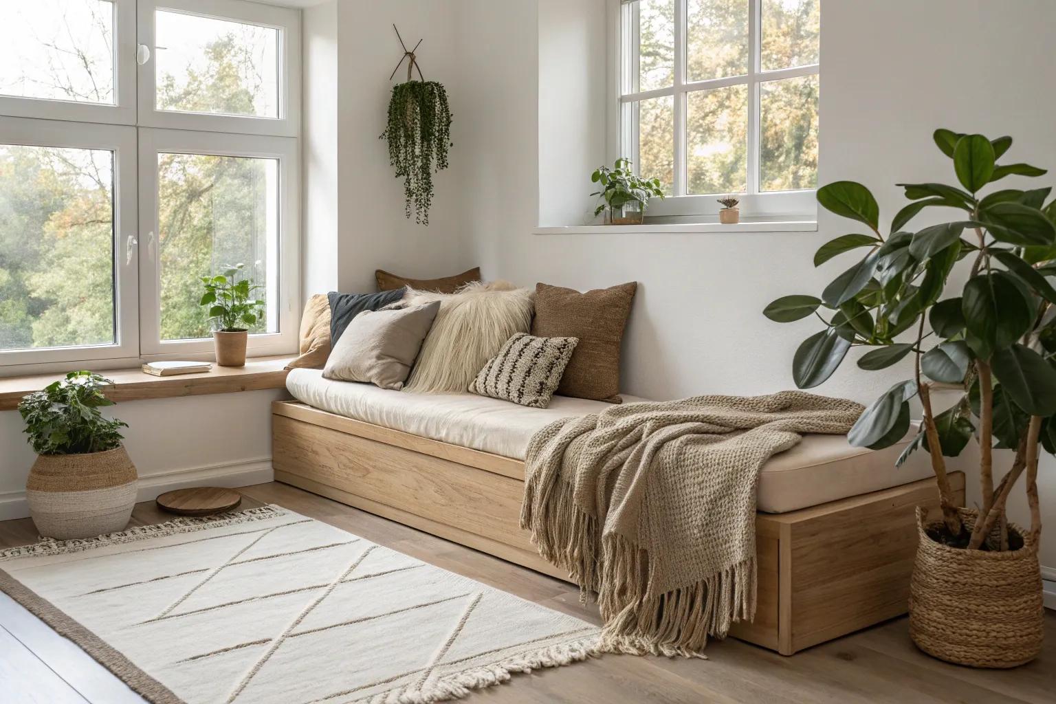 Place your daybed by a window to soak in the natural light. I’ve turned a corner of my studio into a sunlit retreat, and it’s my favorite spot for morning coffee.