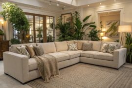 - Burgundy Sofa Set: Enhance your living room with a burgundy sofa set that adds depth and richness, perfectly pairing with beige surroundings.