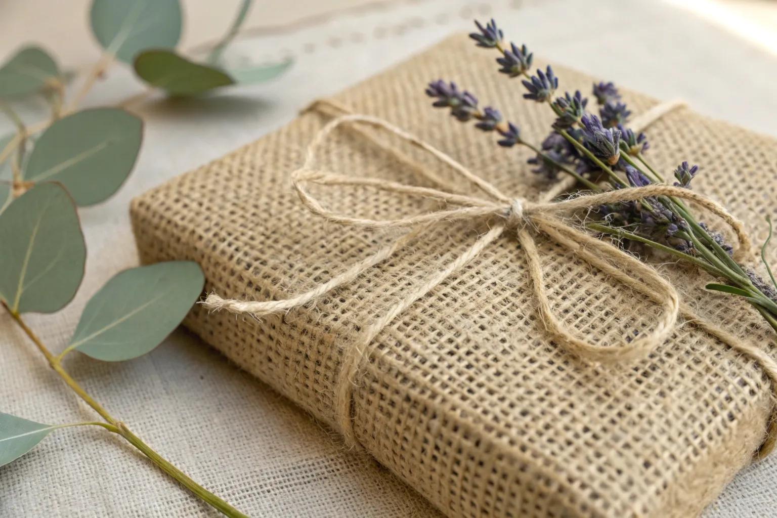 Tuck sprigs of greenery like eucalyptus or pine under the burlap ribbon for an organic touch. In line with this natural approach, you might also like these eco-friendly gift wrapping ideas.