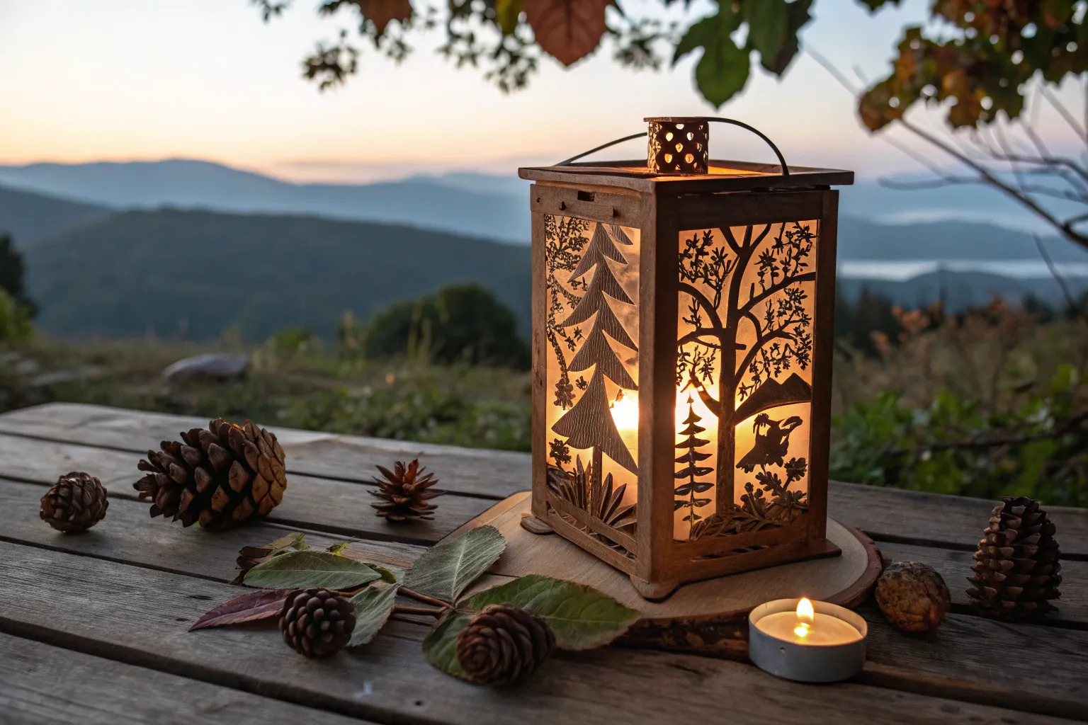 Create a mobile from twine and leaves to hang from a tree branch. I love watching it sway gently in the breeze, adding a touch of natural beauty to the campsite.