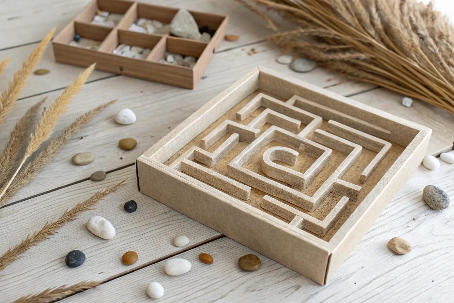 Embark on a tunnel adventure with this minimalist cardboard marble maze, where simplicity meets natural elegance.