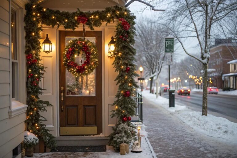 The holiday season is the perfect time to let your front door shine with festive cheer. With a few simple touches, you can make your entryway a delightful preview of the warmth and joy that awaits inside. 1. Candy Cane Door Frame A candy cane-striped door frame for Christmas Wrap your doorframe with candy cane stripes using red and white ribbons. It’s a sweet way to embrace the festive spirit. For more sweet inspiration, explore…
