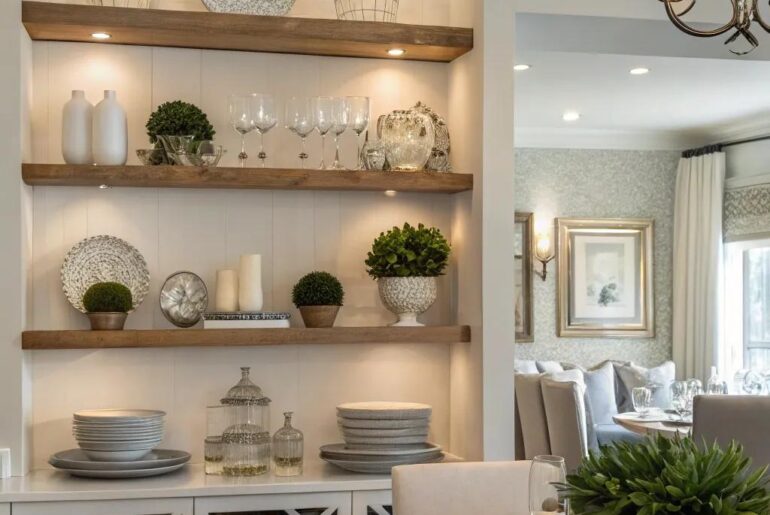 Floating shelves in the dining room are a perfect way to blend style with utility, offering a chic platform for your favorite decor. Let’s dive into some of my favorite ideas to elevate your dining space with these versatile additions. 1. Showcase Your Dinnerware Turn your dinnerware into a decor statement with floating shelves. Displaying your beautiful dinnerware on floating shelves can turn them into stunning decor pieces. I’ve helped clients transform their dining rooms…