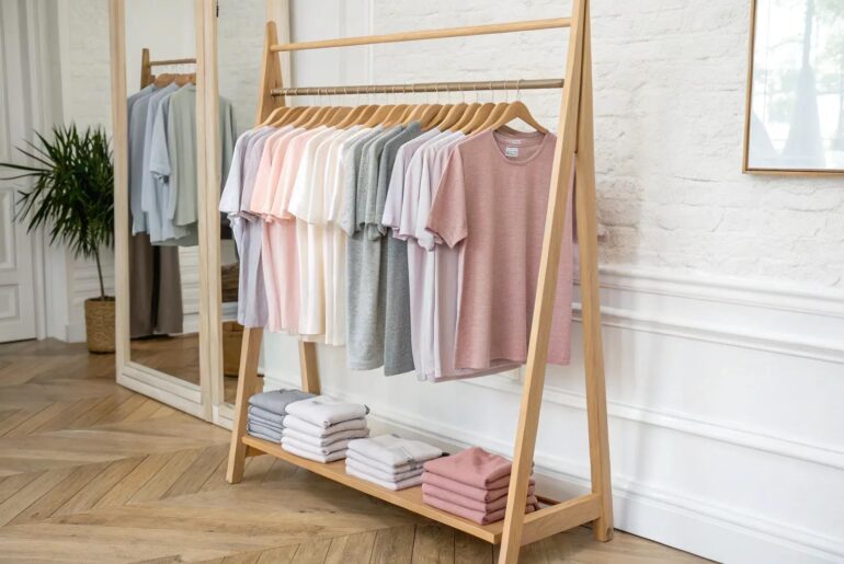 Whether you’ve got a collection of band tees or a small store packed with unique designs, displaying your t-shirts can be an art in itself. With a bit of creativity, you can transform your space into an eye-catching showcase of your favorite tees. 1. Rotating Rack Explore your style effortlessly with this charming rotating rack display. A rotating rack lets you display a lot of shirts in a compact space. It’s a playful way to…