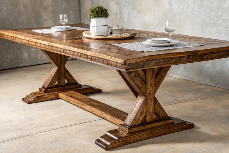 Creating your own dining table can be a fulfilling project that adds a personal touch to your home. With these stylish and creative ideas, you’ll be inspired to craft a table that is both functional and beautiful. 1. Round Table with Pedestal Base Craftsmanship at its finest: A round table that transforms dining into an artful experience. A round table with a single pedestal base is perfect for conversation. I crafted one for my breakfast…