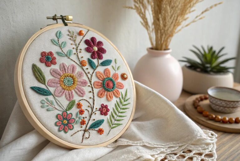 Bead embroidery can transform any fabric into a stunning piece of art with just a few simple stitches. Whether you’re looking to personalize your home decor or add a touch of elegance to clothing, the possibilities are endless and incredibly rewarding. 1. Monochrome Magic Discover the elegance of monochrome bead embroidery—where simplicity meets sophistication. Try using beads in shades of a single color for a chic, monochrome effect. I decorated a grey throw with black…