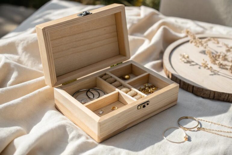 If you’re like me, you probably have a collection of jewelry that deserves a special place of its own. Let’s dive into some DIY jewelry box ideas that are both fun to make and perfect for organizing your treasures. 1. Upcycled Wooden Wine Box Elevate your space with this charming upcycled jewelry box, where simplicity meets elegance. Perfect for storing your favorite pieces in style. Transform an old wine box into a charming jewelry organizer…