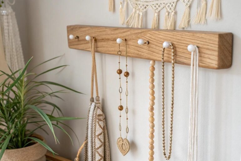 Hey there, fellow DIY enthusiasts! If you’re anything like me, your necklace collection is a beautiful mess begging for a creative storage solution. 1. Wall-Mounted Jewelry Organizer Elevate your space with a handcrafted jewelry organizer that keeps your necklaces stylishly tangle-free. Transform a simple wooden board into a wall-mounted jewelry organizer by adding hooks in rows. I love how this keeps my necklaces tangle-free and doubles as wall art. Possibly helpful picks: Wall-Mount Hooks Set:…
