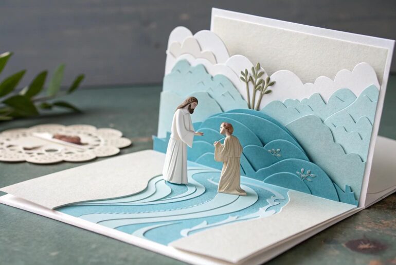 Creating crafts that depict the baptism of Jesus can be a wonderful way to celebrate this pivotal moment in the Christian faith. Join me as we explore a variety of projects that bring this story to life with creativity and joy. 1. Pop-Up Baptism Scene Discover the beauty of simplicity with this elegant pop-up baptism scene, a perfect blend of minimalist design and boho charm. Create a pop-up card featuring Jesus and John the Baptist…
