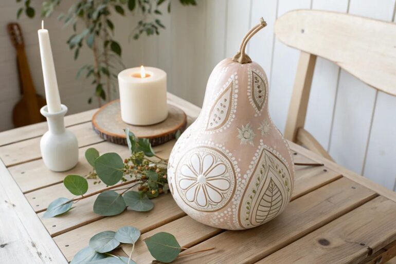 Gourds are nature’s perfect canvas for your creative expressions, offering endless opportunities to jazz up your home decor. Let’s dive into some delightful and inventive ways to transform these humble squash into stunning works of art. 1. Gourd Ornaments Elevate your holiday decor with handcrafted gourd ornaments that blend simplicity and artistic elegance. Hang painted gourds as ornaments for a unique twist on traditional holiday decor. This is one of my favorite DIY home decor…