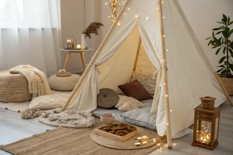 Who says you need to brave the wilderness to enjoy a camping adventure? With a sprinkle of creativity, you can bring the joy of the great outdoors right into your living room for an unforgettable birthday bash! Movie Under the Stars Experience the magic of a ‘Movie Under the Stars’ with this enchanting indoor camping setup. Perfect for a cozy night in! End the night with a movie screening against a backdrop of twinkling lights.…