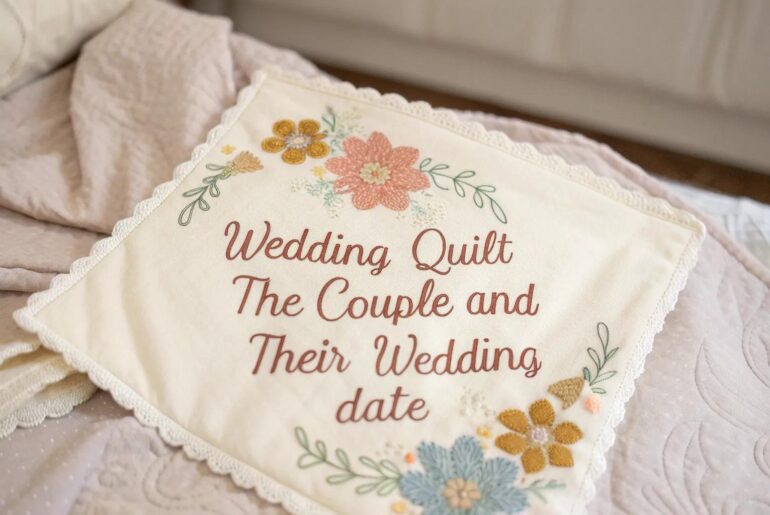 Creating a wedding quilt is like stitching together pieces of love and memory. Adding a personalized label can turn it into a cherished heirloom that speaks directly to the heart. 1. Embroidery of a Special Place Stitch your love story into a quilt – a beautiful memory captured in every thread. Stitch a small image of a significant place, like where they got engaged. It’s like embedding a memory in fabric—a truly memorable embroidery wedding…