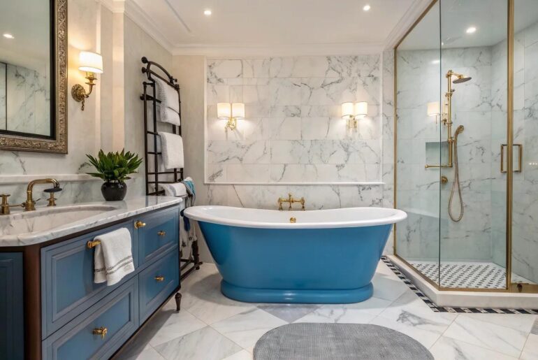A blue bathtub can be a stunning focal point in any bathroom, offering both a pop of color and a sense of calm. Here are 20 creative ways to enhance your bathroom’s design around this vibrant feature. 1. Incorporate Gold Accessories Gold accessories add a luxurious contrast to the calming blue of the bathtub. Gold accessories, like faucets and mirrors, can add a touch of glamour to a bathroom with a blue bathtub. The warm…