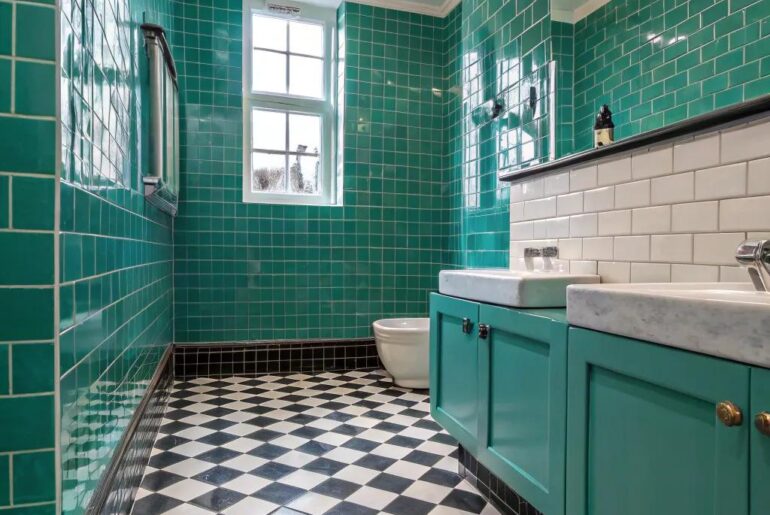 Teal green bathrooms can be both invigorating and calming, offering a perfect blend of tranquility and energy. If you’re looking to bring this unique color into your home, I’ve got some ideas to spark your creativity. 1. Teal Tiles for an Art Deco Touch A bold Art Deco bathroom with teal tiles and contrasting checkerboard floors. Teal tiles can instantly give your bathroom a sophisticated Art Deco vibe. Similar to other teal, black, and white…