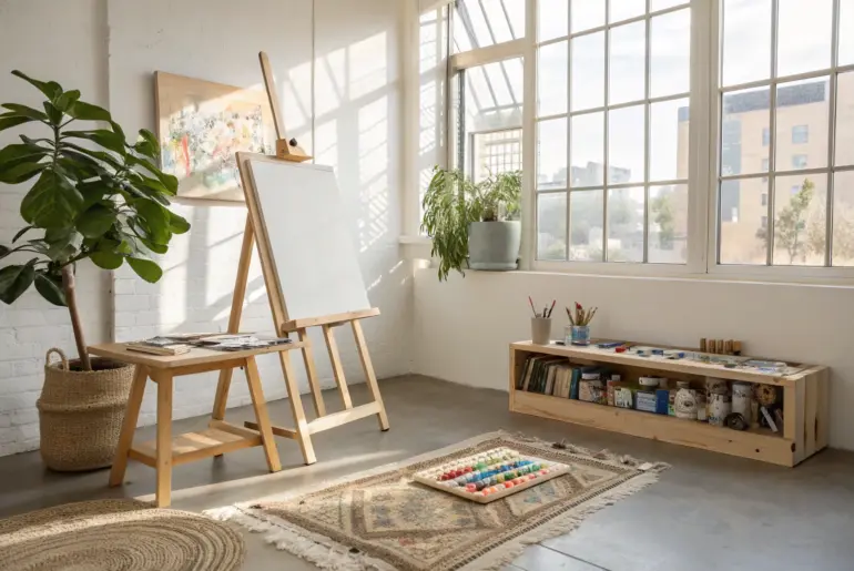 Every artist deserves a personal sanctuary where creativity can flow freely. Let’s explore some inspiring painting studio ideas that will transform any space into a haven for your artistic pursuits. Art Display Areas Showcase your art in a serene, minimalist haven where creativity meets elegance. Create spaces to showcase your completed pieces. I love having a dedicated spot where my latest masterpiece can shine before it’s hung elsewhere. A few choices to try: Adjustable Wooden…