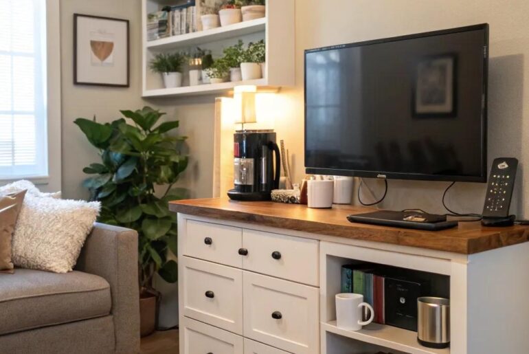 Creating a home office that combines work and leisure can be a delightful challenge. Let’s explore some unique ideas to seamlessly integrate a couch and TV into your workspace, making it both functional and inviting. 1. Mount the TV for Space Wall-mounted TV maximizes space efficiency. Mounting your TV on the wall can save valuable space and create a clean look, a key strategy in many apartment living room combo ideas. It ensures that your…