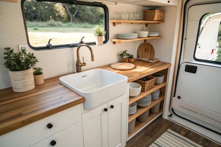 Designing a campervan kitchen is like crafting a tiny, functional piece of art. With the right ideas, you can turn even the smallest space into a culinary haven on wheels. 1. Foldable Countertops Maximize your campervan space with elegant foldable countertops for the perfect blend of style and functionality. Adding foldable countertops can instantly double your prep space when you need it and tuck away when you don’t. I’ve found this especially handy when hosting…