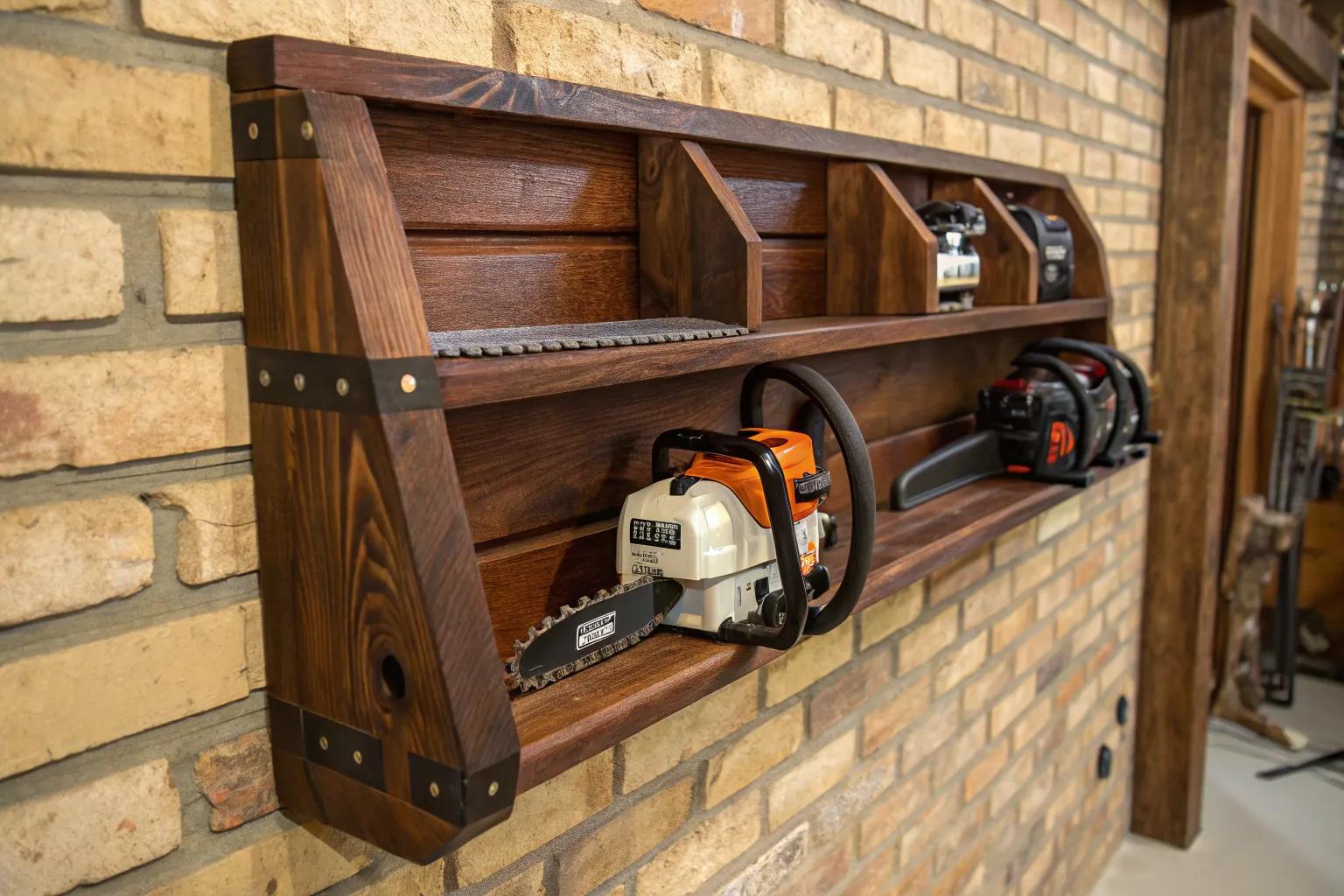 Design a built-in nook in your garage specifically for your chainsaw. It adds a custom touch and keeps my saw safely tucked away.