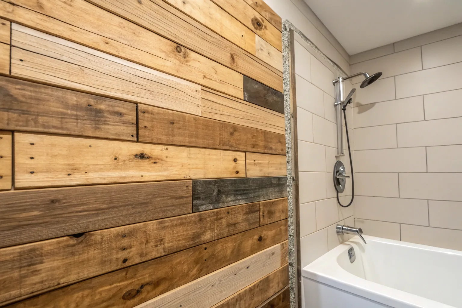 Transform your bathroom with the rustic charm of reclaimed wood shower panels.