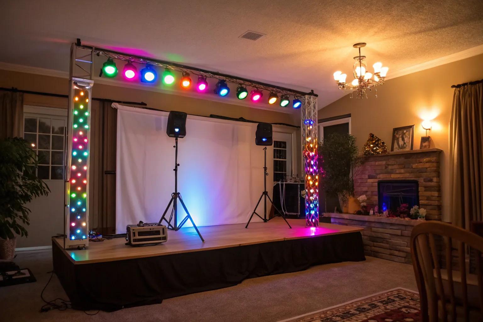 Use LED light strips to outline your stage or backdrop for a soft, ambient glow. This technique is also surprisingly effective for creative kitchen lighting ideas. This is a trick I often recommend to clients looking to add depth without complexity.