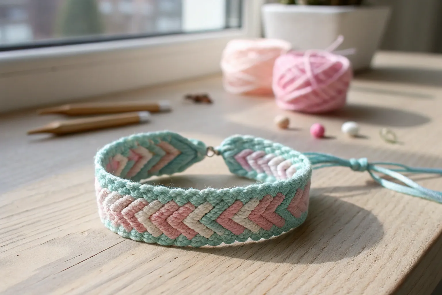 Use eco-friendly yarn for a sustainable bracelet. I love knowing my crafts are kind to the planet as well as stylish.