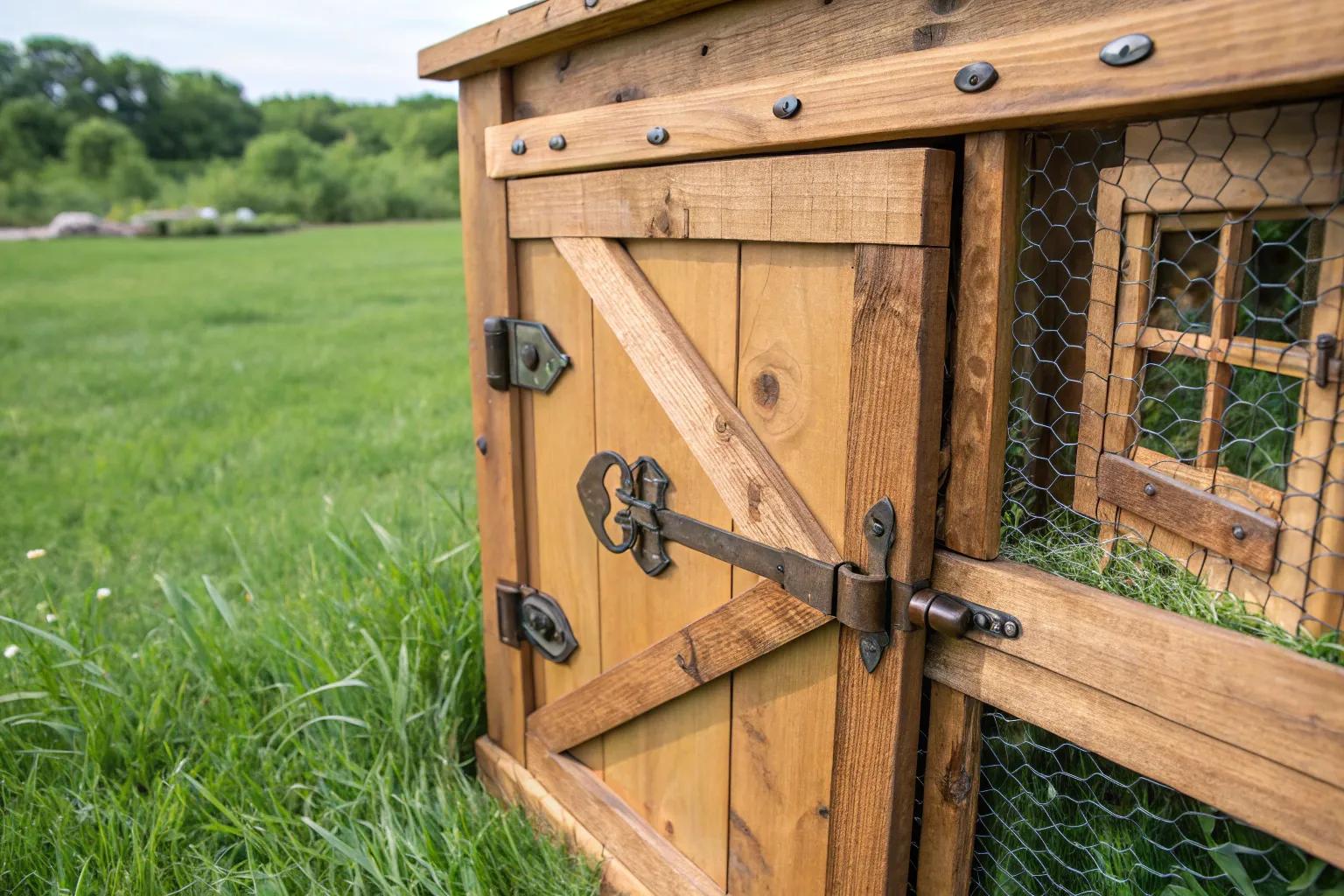 Incorporate wire mesh into your door design for visibility and ventilation. This approach mimics the visibility found in classic French door designs. I love how it keeps my chickens safe while letting in a gentle breeze, all with a clear view of their antics.