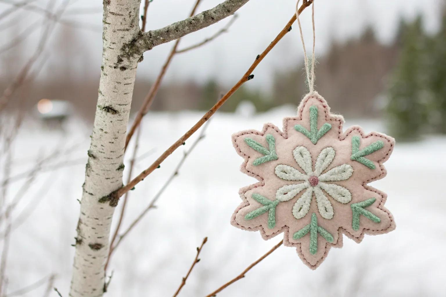 Decorate your windows with felted snowflakes—it’s one of my favorite crafts with felt ideas. Each is unique, like the real thing, and they cast beautiful shadows when the sun shines through.