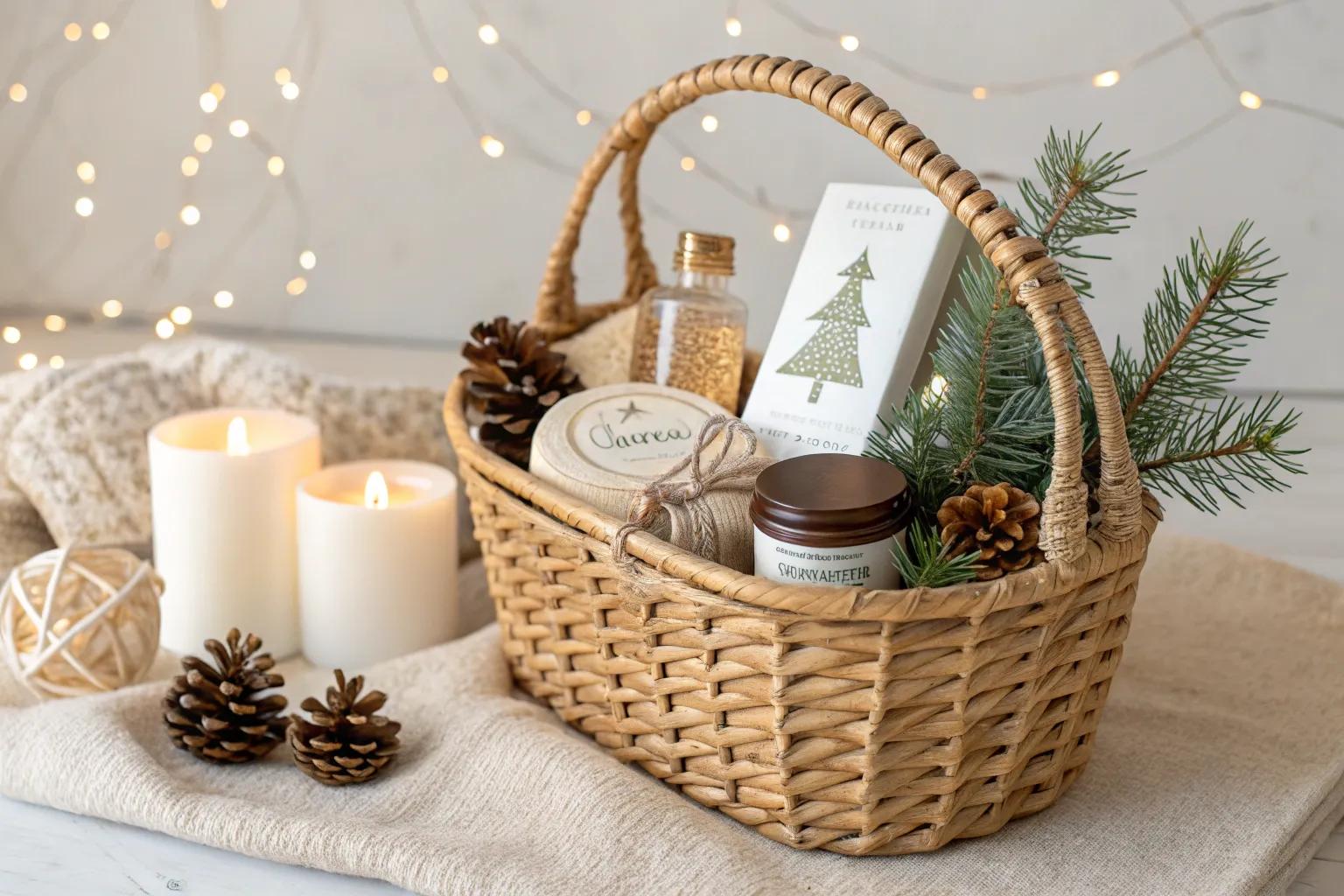 Curate a selection of artisanal cheeses, crackers, and gourmet spreads for the foodies in your life. A basket like this is perfect for indulging in a little holiday luxury. This is a great example of our creative Christmas present ideas.