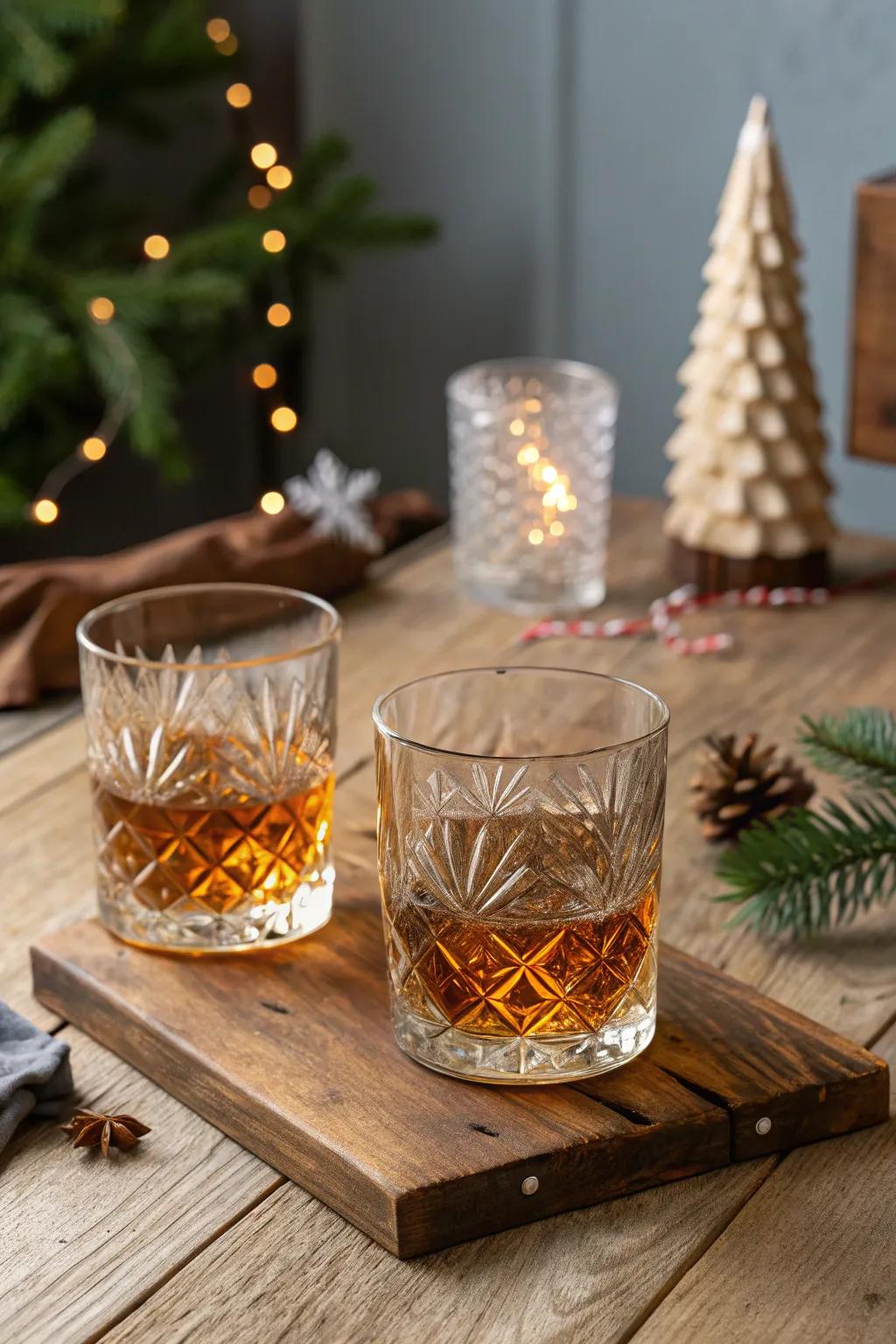 - Engraved Crystal Whiskey Glasses: These engraved crystal whiskey glasses offer a sophisticated touch to any drink, making it perfect for personalizing with initials or a special date.