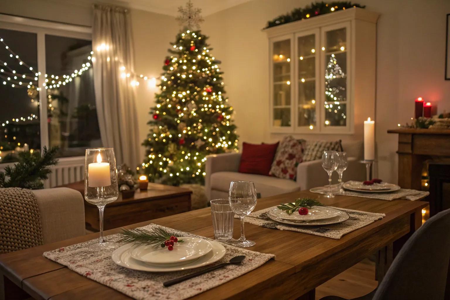 Transform your space with twinkling lights and a backdrop of holiday greenery. In my Boston apartment, I love using a mix of vintage ornaments and modern garlands to create a magical atmosphere.