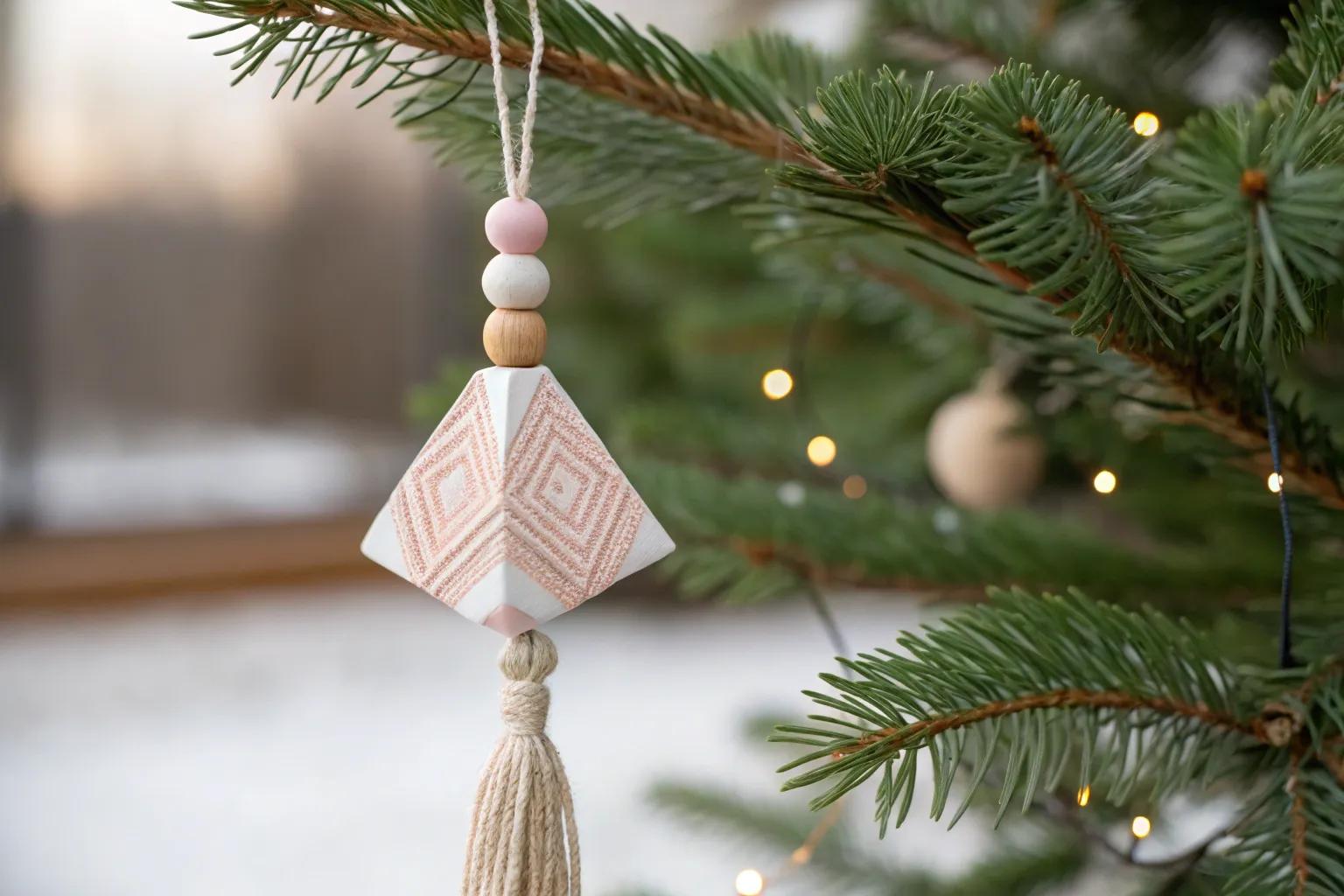 Combine fabric, paper, and paint to create ornaments that are mini works of art. The blend of textures makes each piece uniquely captivating.