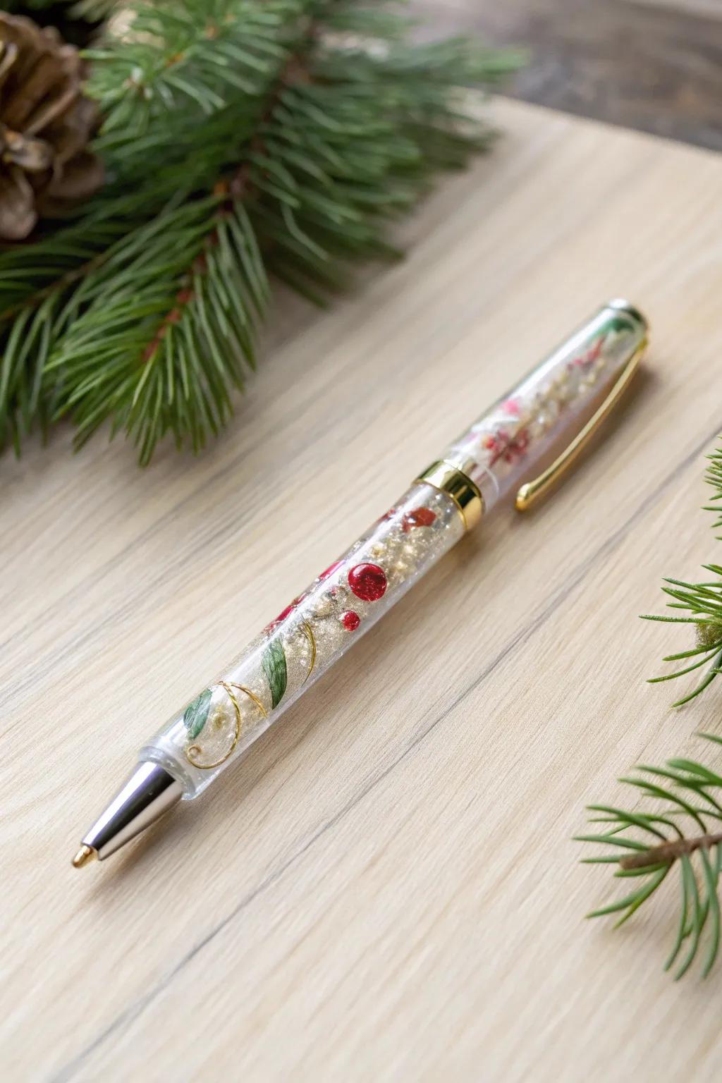 Add a bit of seasonal cheer to your stationery with Christmas resin pens. A touch of glitter makes writing holiday cards even more fun.