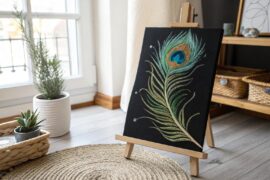 For a soft and tranquil effect, try a watercolor wash. I used blues and purples to create a serene backdrop in my meditation space. You can find more easy painting ideas like this for a soothing effect. It’s like having a piece of art right on your wall.
