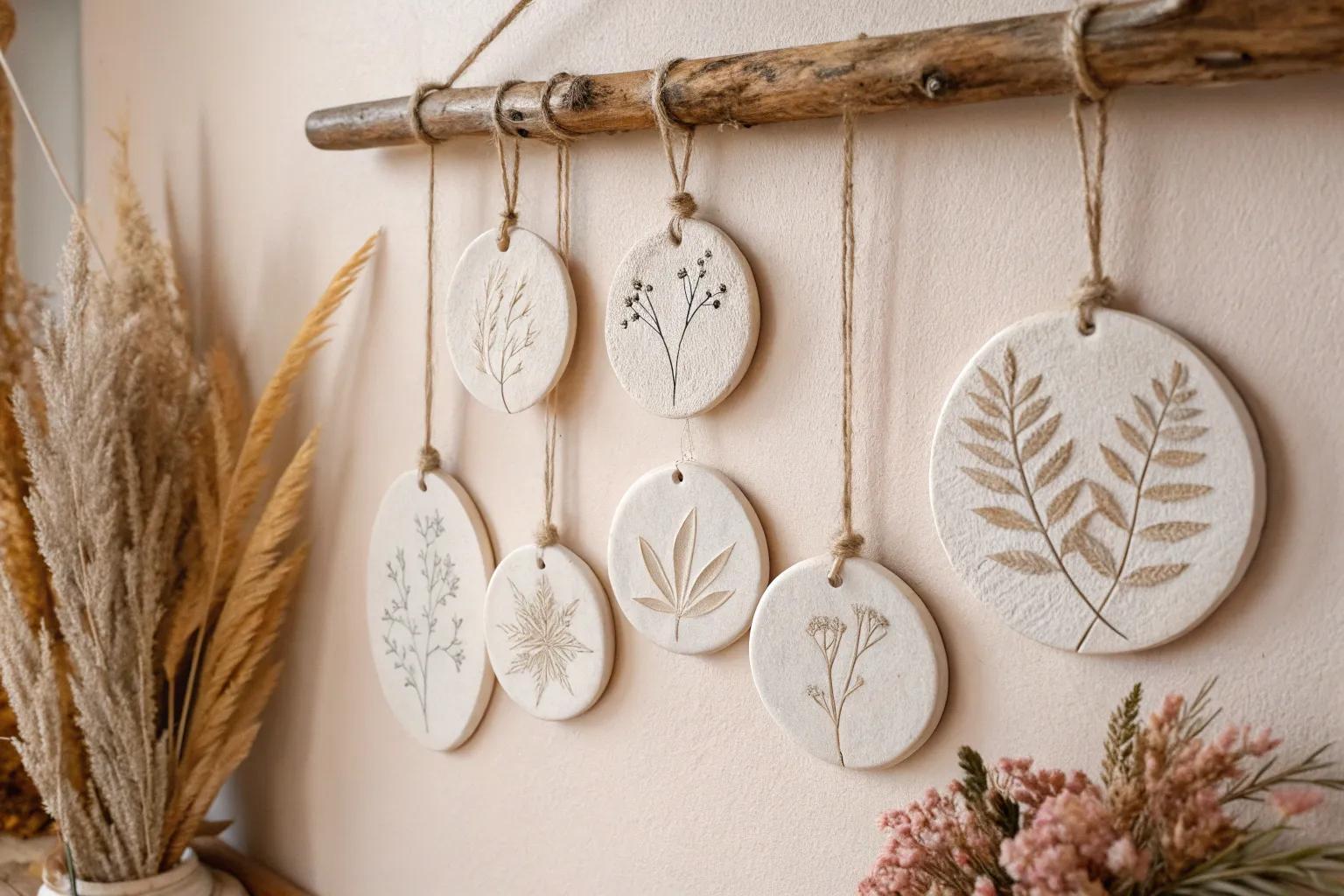 Add macramé tassels to the bottom of your clay pieces for an extra layer of texture and interest. This is a hallmark of boho clay wall decor, as mixing mediums can really elevate your design.
