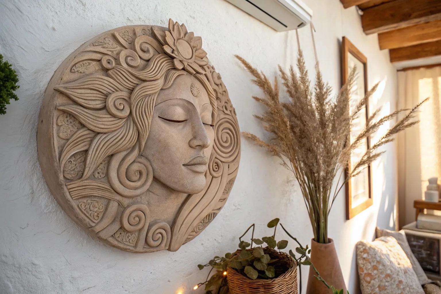Think outside the box with abstract elements that exaggerate facial features. This approach, which is central to many boho clay wall sculpture ideas, lets me play with shapes and forms, resulting in truly unique pieces.