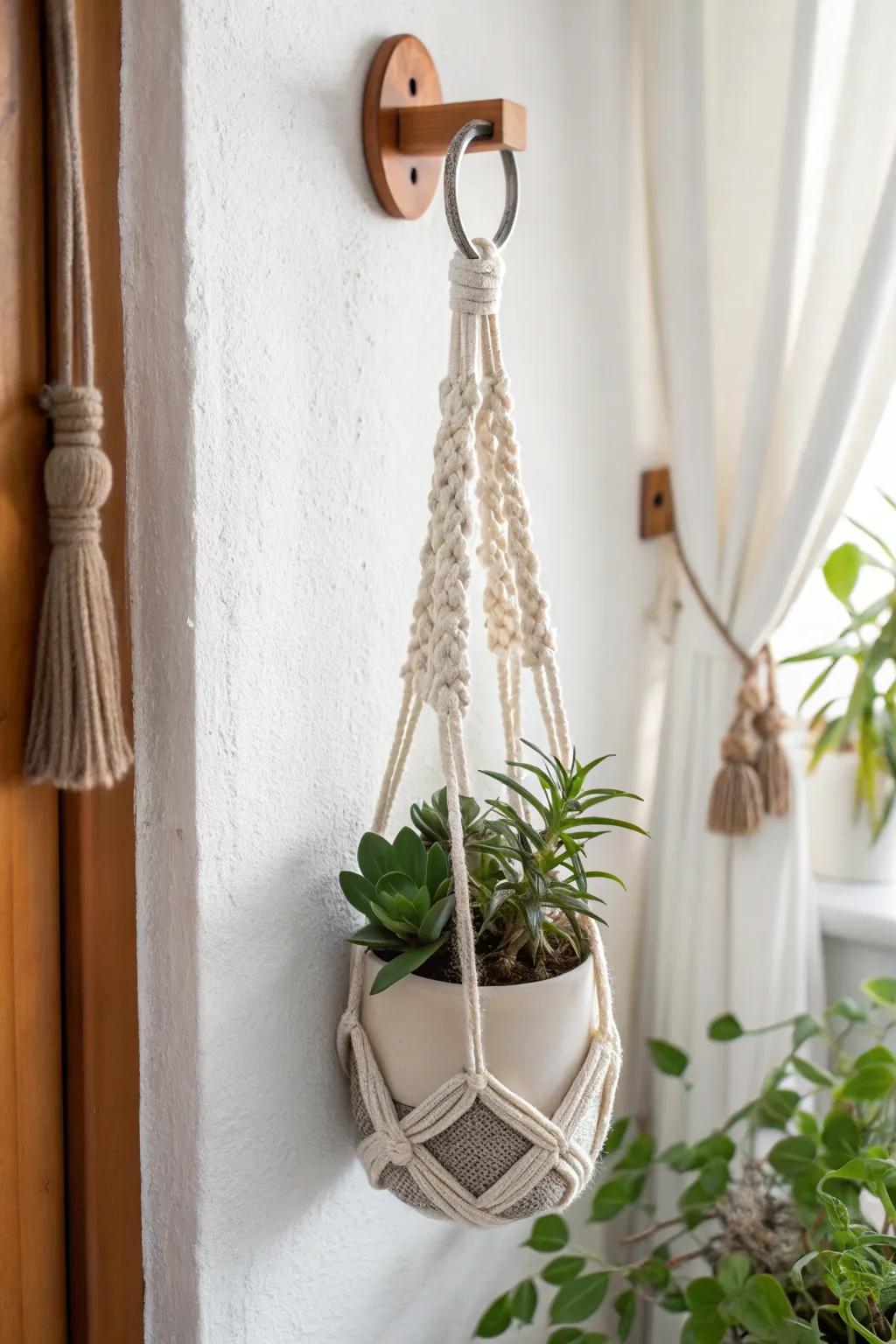 • Macrame Plant Hanger: Add a boho touch with this elegant macrame hanger, ideal for displaying succulents beautifully.