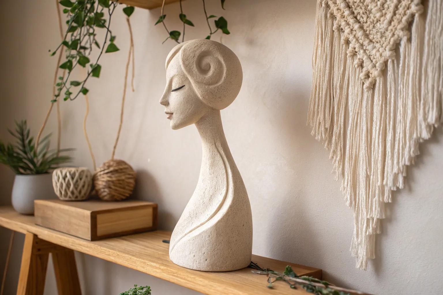 Get creative with abstract sculptures that spark conversation. My abstract clay piece near the entryway is always a hit.