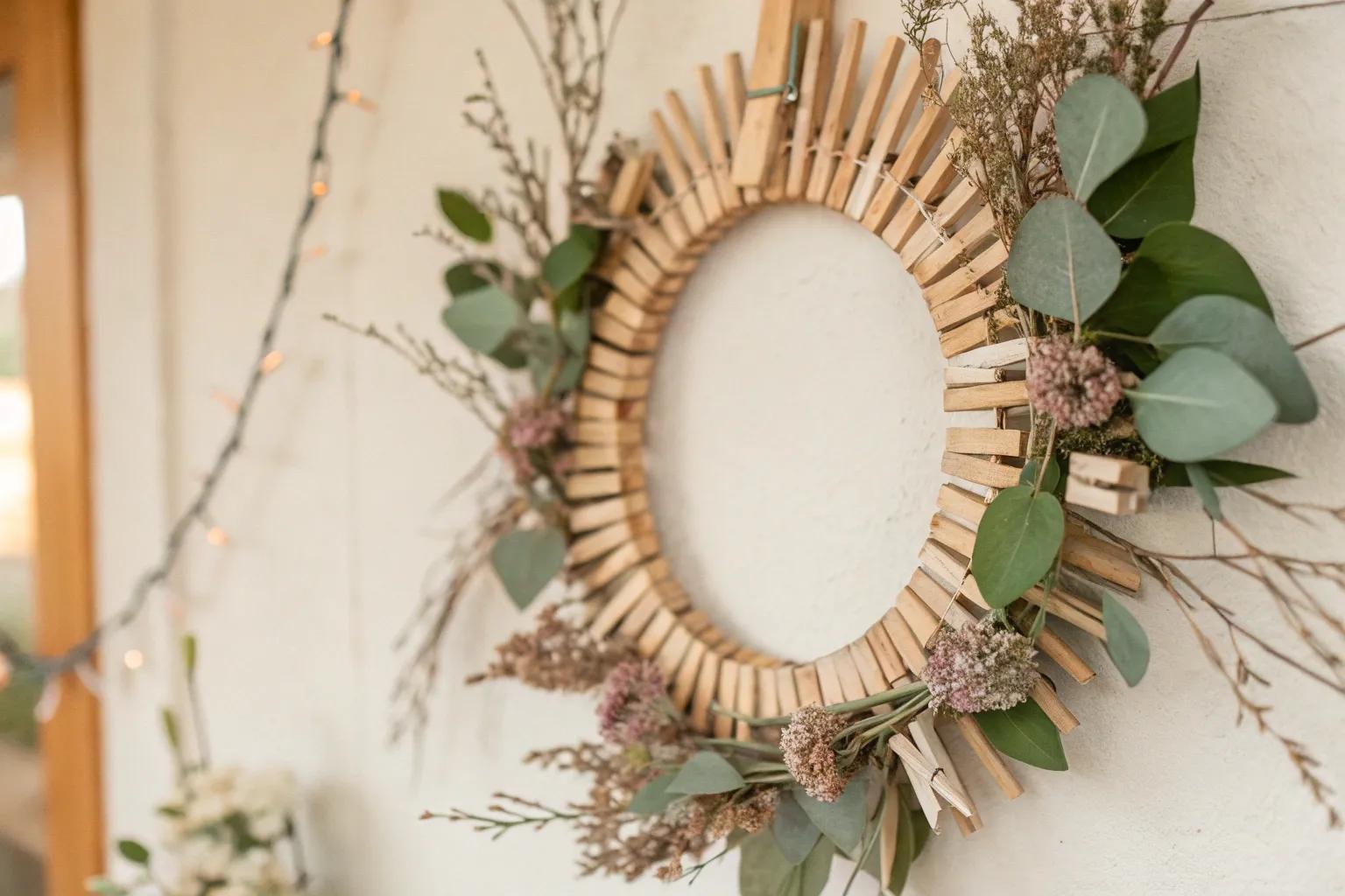 Embrace Boho Chic: A clothespin wreath that blends minimalist elegance with bohemian charm.